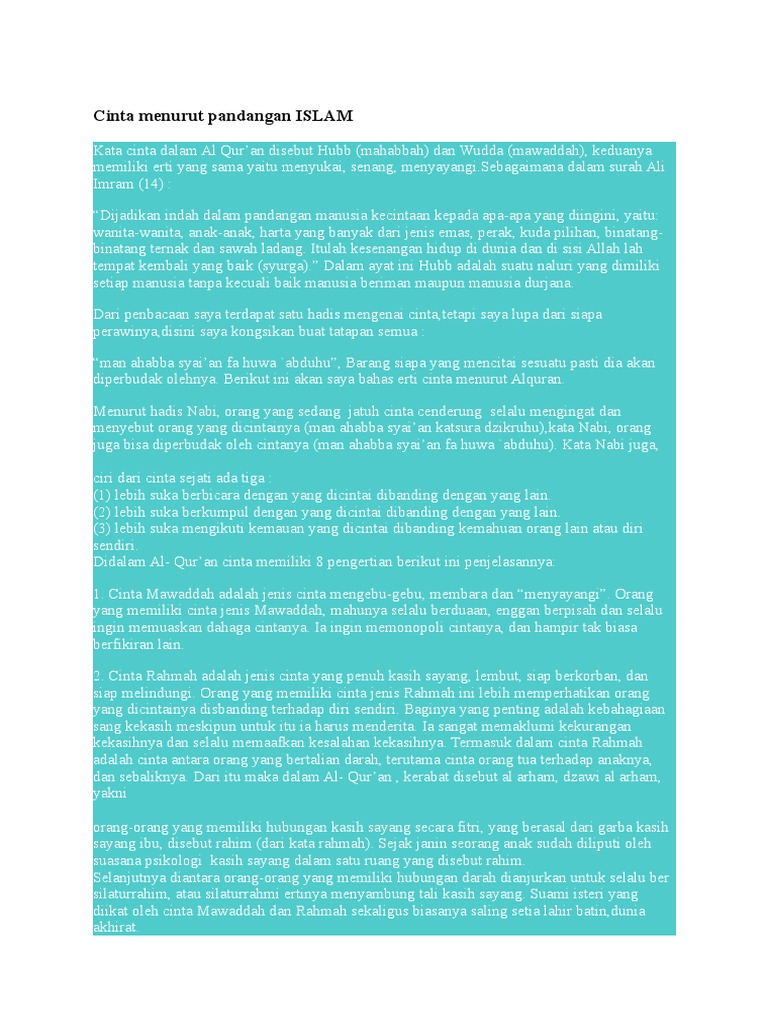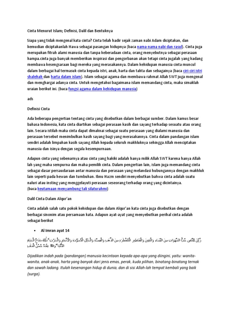 Cinta menurut islam setidaknya dibagi menjadi: apa itu cinta. Definisi arti cinta secara mutlak dan sempurna sungguh rumit disimpulkan.
